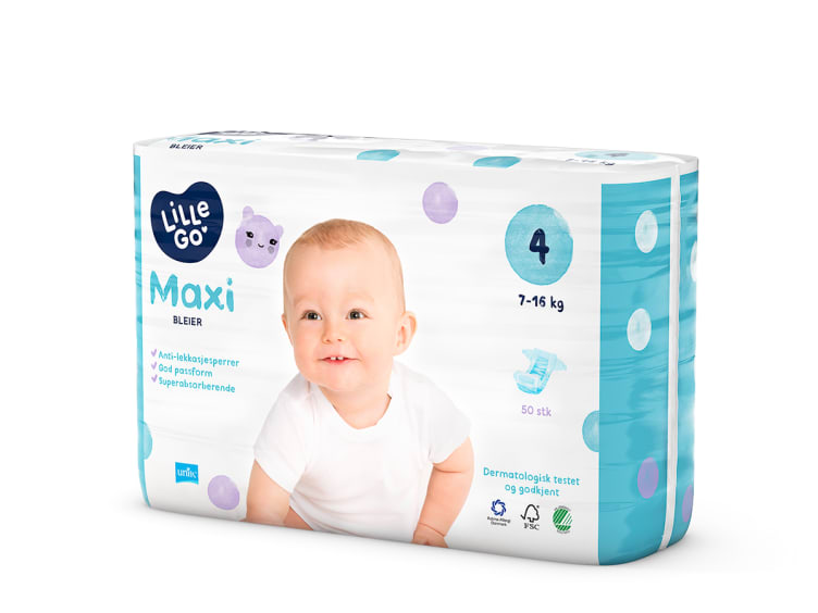 LilleGo' maxibleier. Dermatologisk testet og godkjent. Størrelse 4, 7-16 kg.