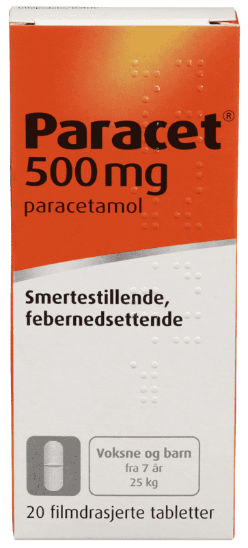 Paracet 500mg avlang filmdrasjerte tabletter. Smertestillende og febernedsettende for voksne og barn over 3 år (15 kg). Enklere å svelge, uten smak.